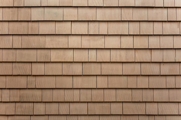 Fragment of a red roof of a private house made of shingles