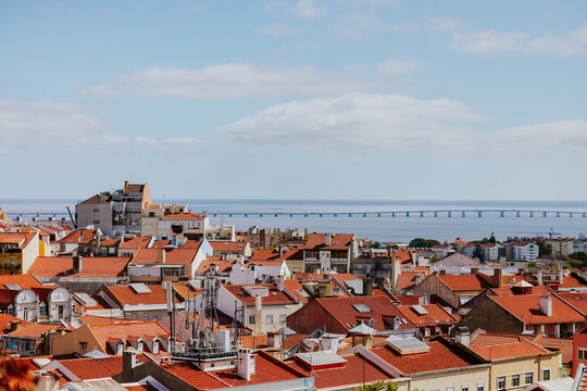 Lisbon cityscape with red rooftops and Tagus River view