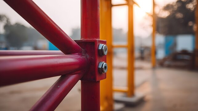 Red Steel Beams Against a Dramatic Sky: Architectural Construction