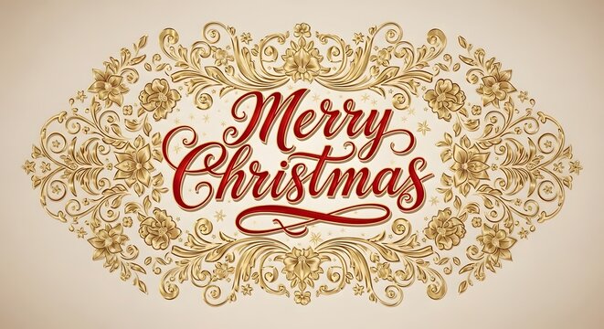 Elegant Golden Ornate Flourish with Classic Red Script 'Merry Christmas' Text
