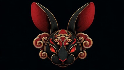 Lunar New Year Rabbit Head Stylized Black Red Gold Quilling Art