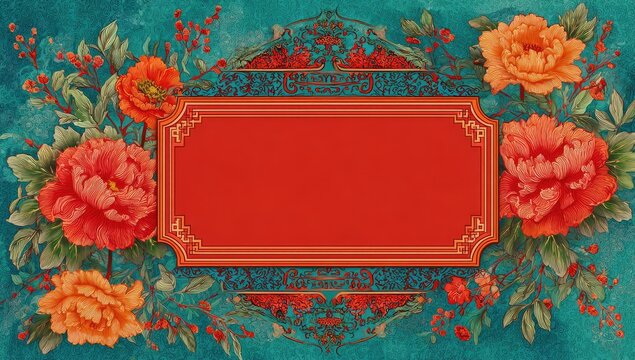 Decorative floral frame with a red backdrop