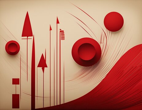 A red-armored warrior stands in a contemplative pose, sword in hand, surrounded by abstract red shapes, symbolizing strength and vigilance. Ideal for themes of fantasy, battle
