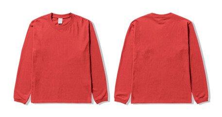 red t shirt front and back view, isolated on white background. Ready for your mock up design template