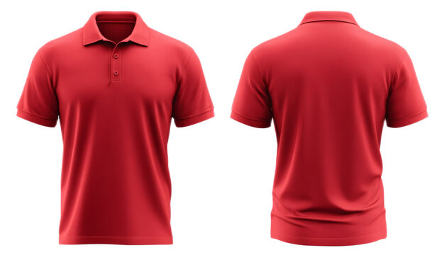 Isolated stylish red polo shirt with front and back views on white background, showcasing classic collar and button details in high-quality mockup design.