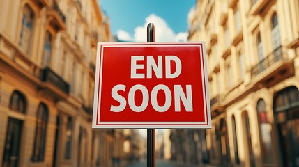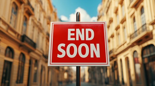 Recession: A haunting dystopian cityscape, a deserted street lined with dilapidated buildings, a stark red sign warning of "Recession" casting a shadow over the desolate landscape.