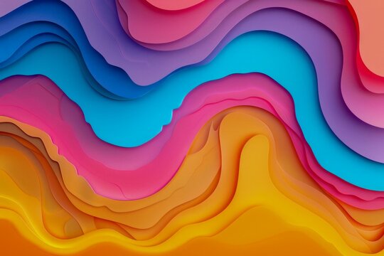 Vibrant Abstract Paper Cut Waves Background in Colorful Gradient Hues for Creative Design