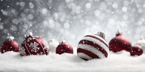 Red and white snowflakes on winter wonderland background