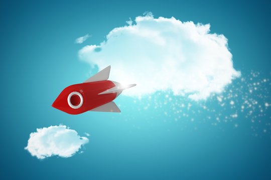 Launch of a red rocket isolated on clear background, made of precious metal. Successful start concept. Generative Ai