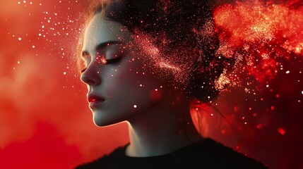Glowing Woman Portrait with Red Sparkles