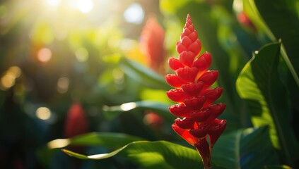 Tiny snail brings its carved spiral shell on red leaf plant.