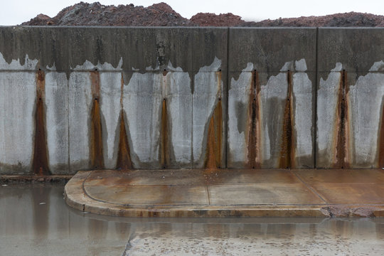 Weathered concrete wall texture with cracks, holes and stains for industrial background