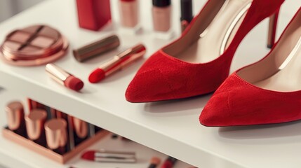 Elegant red highheeled shoes on a soft, neutral background. Symbol of style, fashion, and glamour. Perfect for illustrating luxury, special occasions, or confidence.