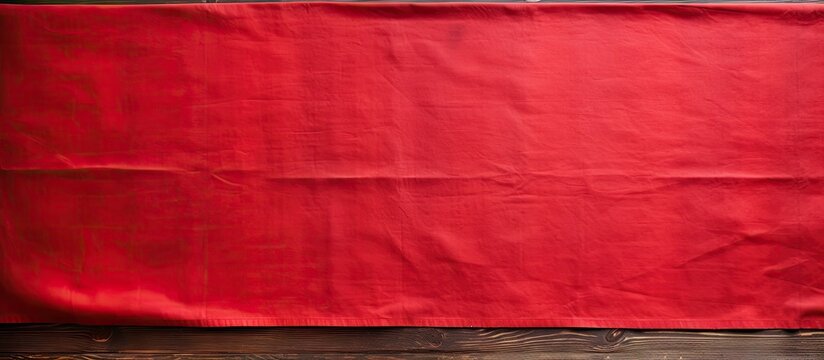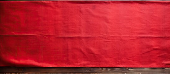 Perspective view of red tablecloth for food on cement background. Empty space for your design