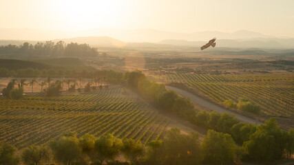Majestic hawk in sunlit grasslands hunting