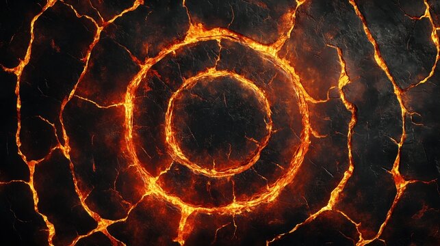 Molten lava target with glowing orange-red textures at the ring edges, radiating heat and forming cracks between layers