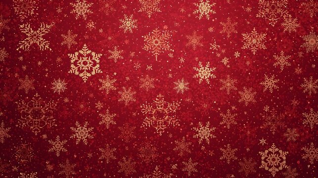 christmas, holiday, winter, trendy, Elegant gold snowflakes scattered on a rich red textured background creating a festive and luxurious winter holiday pattern perfect for Christm