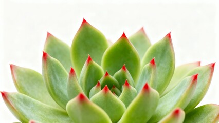 Potted succulent with red tips sits atop a shelf against a gray backdrop