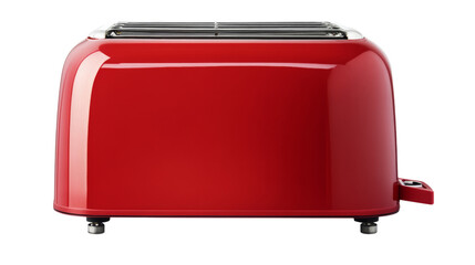 Modern red toaster with toasted bread for breakfast inside, isolated on white background. File contains clipping path.