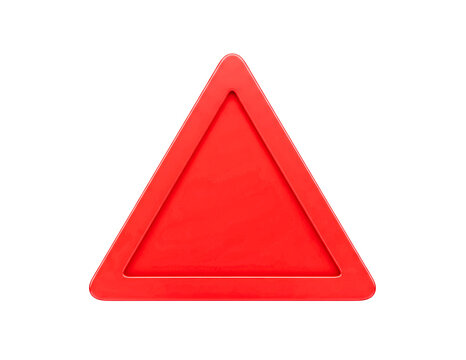 Glossy red triangle warning sign with a black border isolated on transparent background