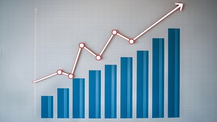 Vertical Bar Chart with Red Line Graph Showing Upward Trend