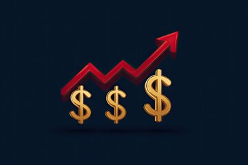 Gold dollar signs with a red, zigzag arrow pointing upwards on a dark background