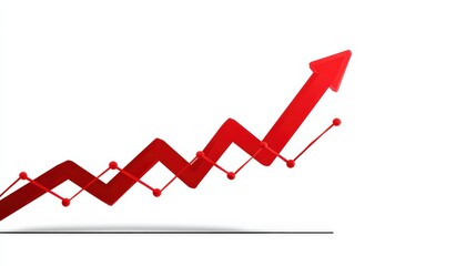 A red zigzag arrow graph symbolizing growth or upward trend on a light background.