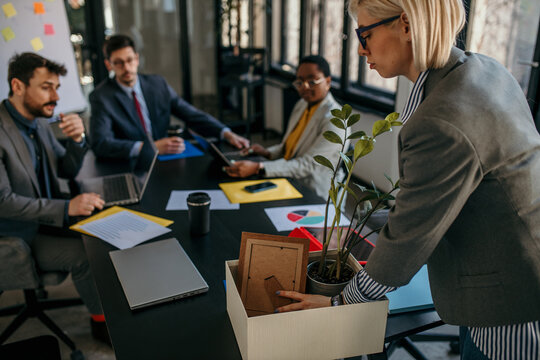 Redundant Businesswoman Leaving Office With Box
