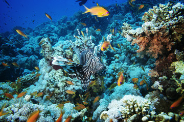 Underwater view of the coral reef. Ecosystem. Life in tropical waters.