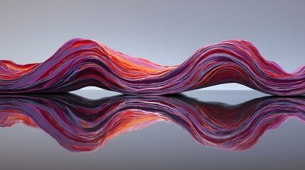 Flowing, colorful, abstract design reflecting on a glossy surface against a gradient background