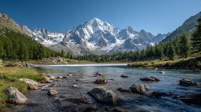 Pristine mountain stream flowing through rocky valley