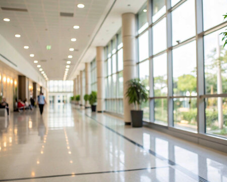 A wide, minimalist airport terminal bathed in natural light, showcasing its reflective flooring