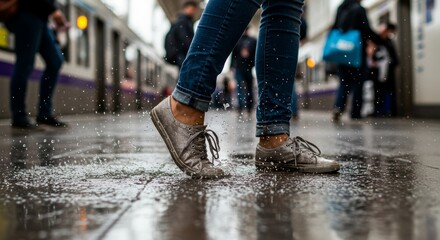 Futuristic neon pound symbol with circuit traces reflecting on wet floor for fintech