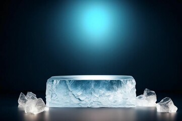 ice podium against winter outside scene, display stage of product, cold background for product presentation. mockup platform. cool stand pedestal round podium