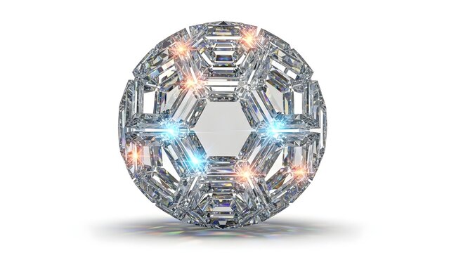 Futuristic Geometric Metallic Sphere with Glowing Blue and Orange Lights
