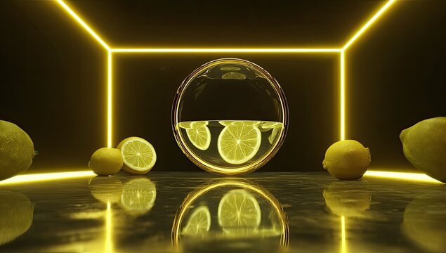 Glowing ai network sphere floating over reflective surface futuristic digital mesh orb