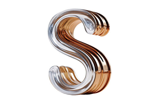 Metallic 'S' glyph shines against black