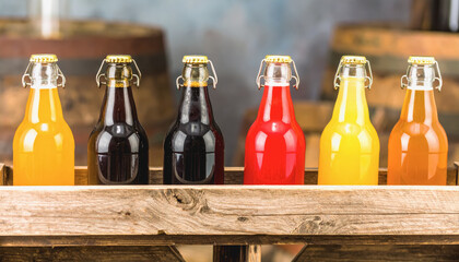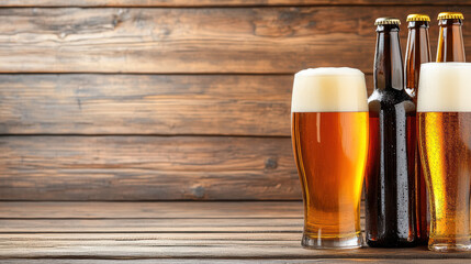 Refreshing beer variety on rustic pub table