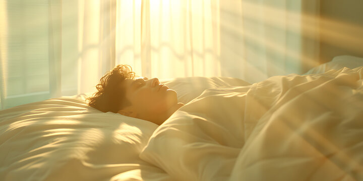 Man Sleeping on a Bed in Morning Light | Peaceful Rest and Early Day Serenity