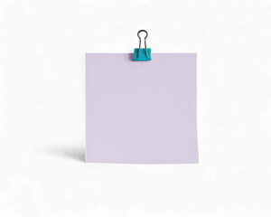 Yellow sticky note with paperclip on blank white paper for business office reminder