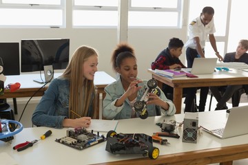 Students are discussing about the model car