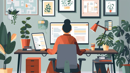 Home office remote work with modern technology