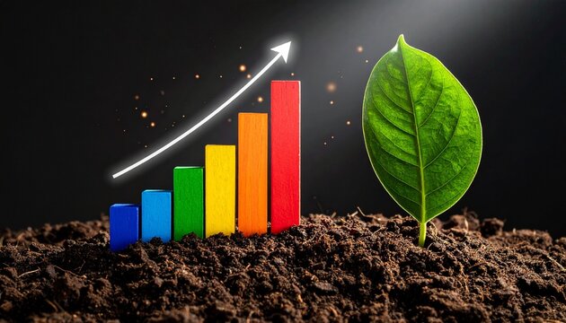 Glowing green icons representing eco-friendly energy sources surround the letters 'Ai' against a dark background with sustainability concept