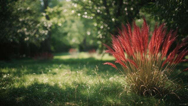 Red Miscanthus grass growing in a woodland area emphasizing biomass or renewable resource applications