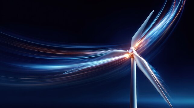Futuristic wind turbines and data overlay compositing renewable energy insights