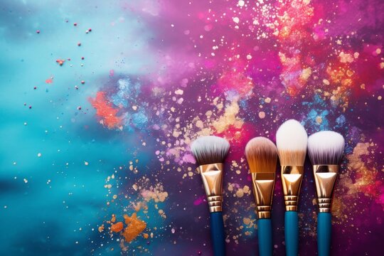 Digitally generated makeup brushes on colorful background