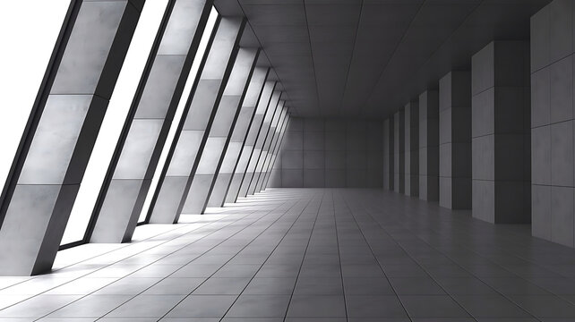 Empty industrial warehouse with concrete floor, columns and clerestory windows