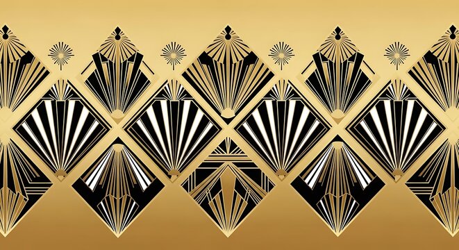 Elegant art deco pattern seamless repetitive geometric design luxurious gold and black motif