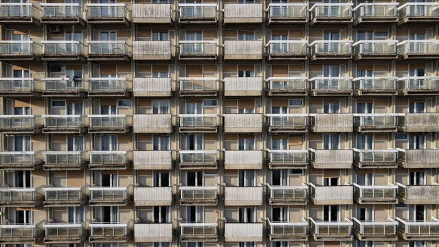 Arches of Modernity: The elegant lines of a contemporary architectural facade create a sense of depth, light, and geometric harmony. The repetitive arch design showcases the art of design.