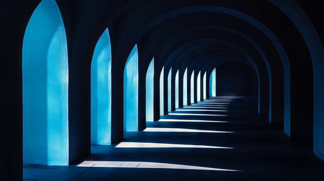 Abstract Minimalistic Dots Pattern on blue Background for Design Banner Template with Central White Space for Text. Simple Geometric Modern Wallpaper with Copy Space on blue Background.